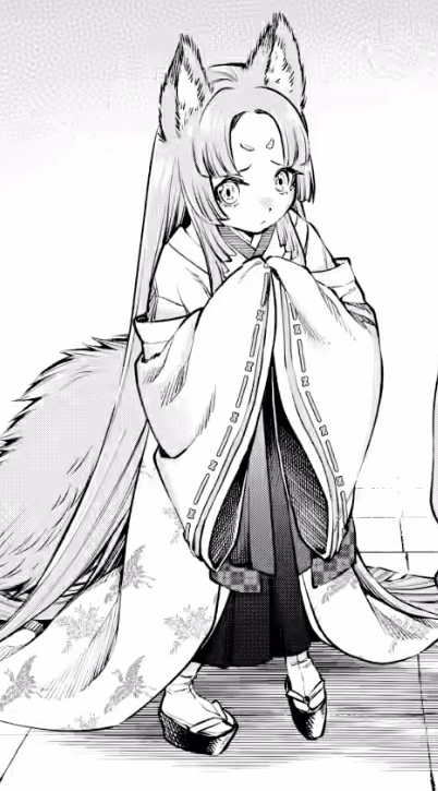 Fire Fox calls out to her injured brother while their mother expresses regret that she could not leave the shrine to protect her children. Kunai shoves her aside and forces healing water down Blue Fox's throat, restoring the boy's fading life. When it does nothing to stop the bleeding, the Grand Priestess explains that those wounded by Cale's scythe are cursed, prompting the Demon Lord to conjure an ōnusa to weaken the affliction before dispelling it with an Alter of Decursing. Fire Fox jumps for joy upon witnessing her brother's recovery, while their mother expresses gratitude for the Demon Lord's help. The Grand Priestess instructs her children to do the same, but Fire Fox refuses to thank a "meanie human". Kunai finds the lack of manners distasteful, but is expelled from the Divine Realm shortly thereafter.